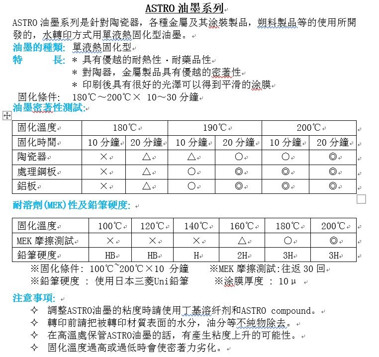田中油墨 水轉印油墨
